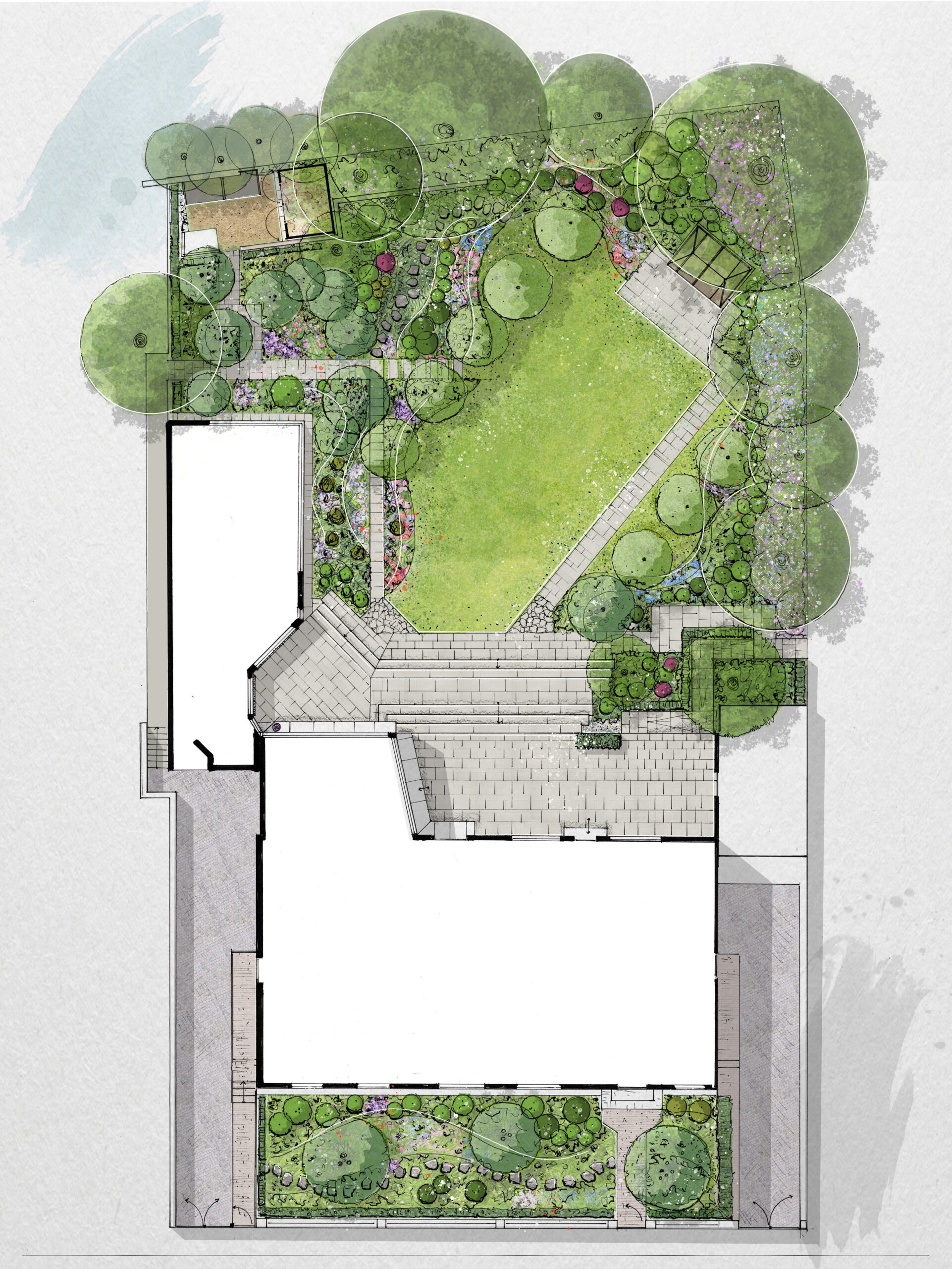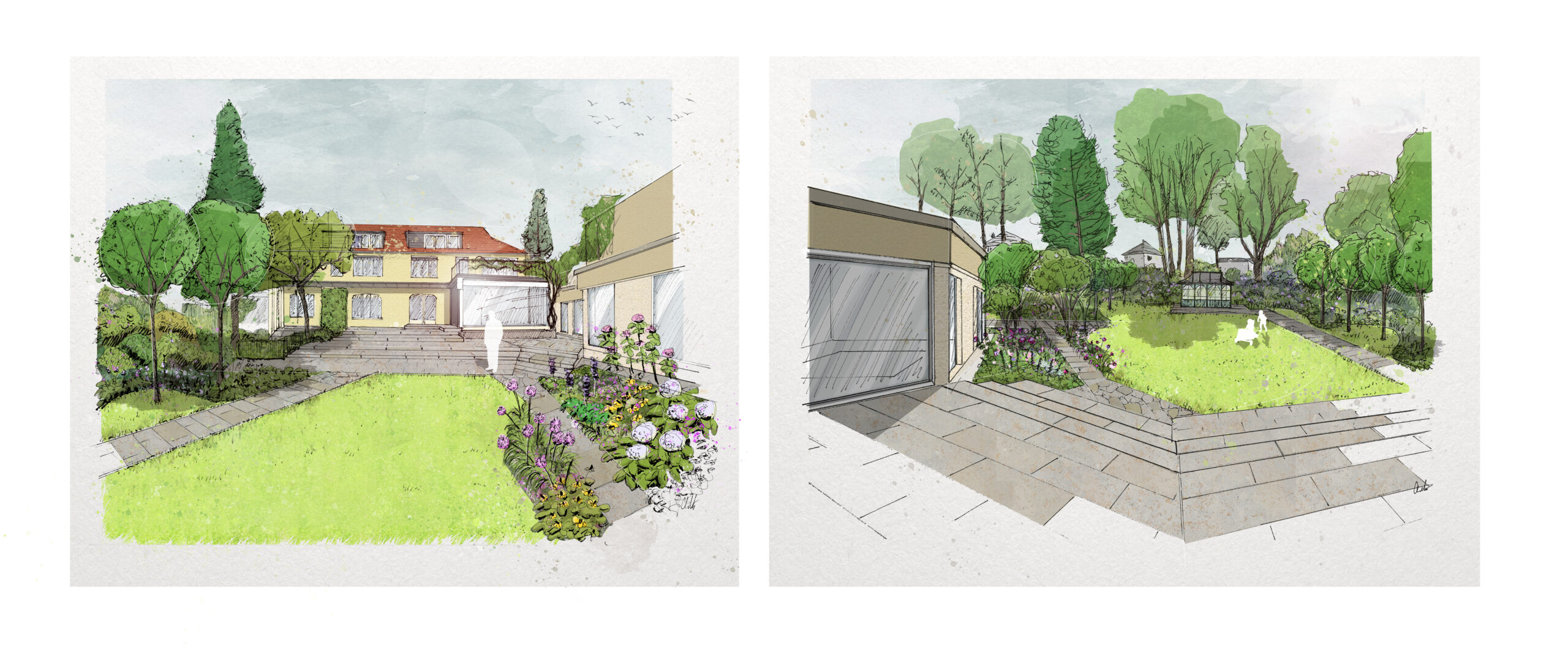 Der bestehende Garten aus den 1970er-Jahren wurde im Rahmen der Hausrenovation vollständig neu strukturiert. Ziel der Planung war es, die funktionalen Anforderungen eines modernen Wohnens mit einer atmosphärisch dichten, langlebigen und klar gegliederten Gartenanlage zu verbinden. Der Entwurf übersetzt architektonische Linien in den Außenraum und schafft fließende Übergänge zwischen Haus und Garten.