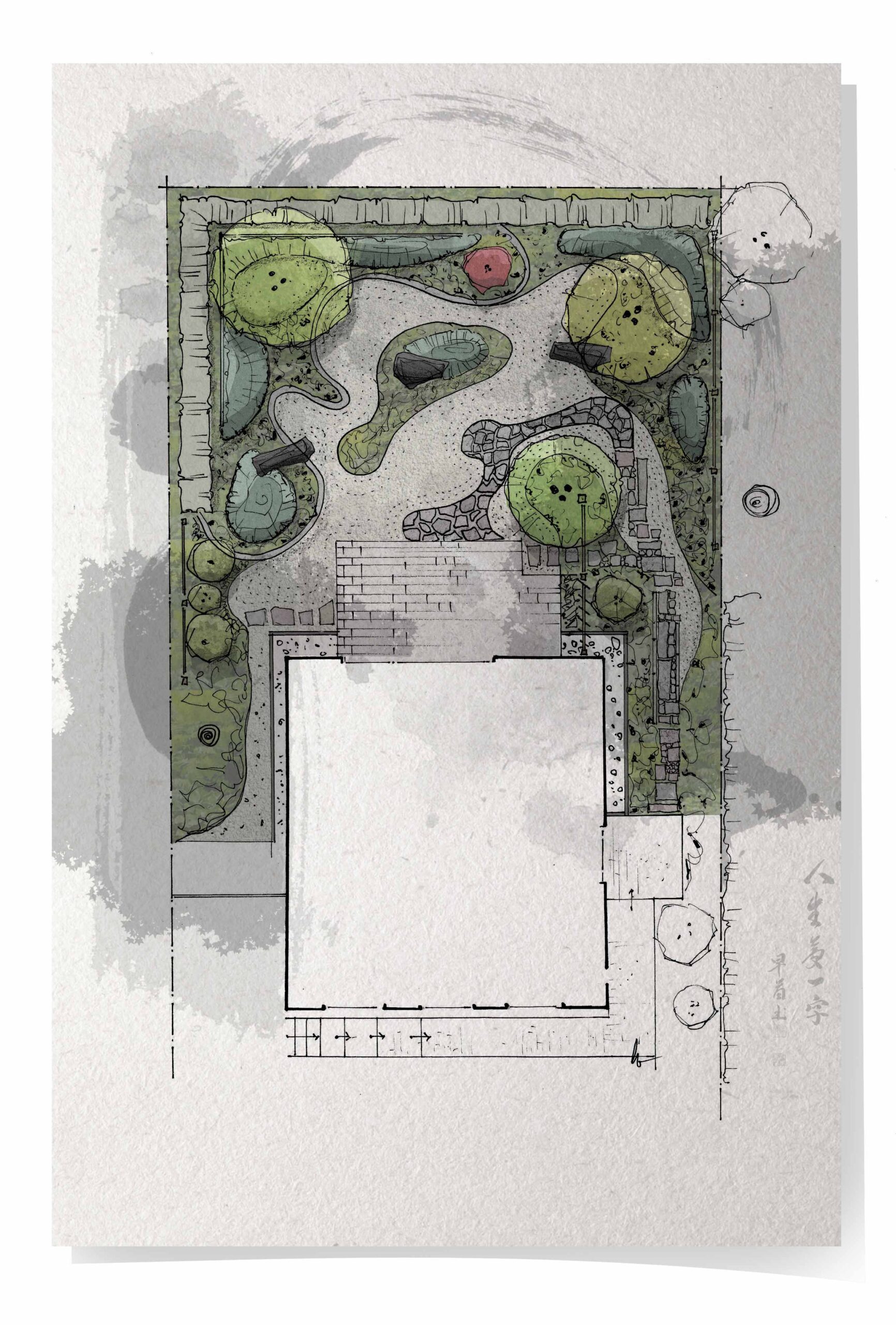 Ziel der Umgestaltung ist die Transformation eines bestehenden Gartens in einen japanisch inspirierten Betrachtungsgarten. Der neue Gartenraum folgt der Idee des kontemplativen Erlebens: Er ist nicht als Nutzgarten konzipiert, sondern als Ort der Ruhe, der Reduktion und der bewussten Wahrnehmung von Raum, Material und Bewegung.