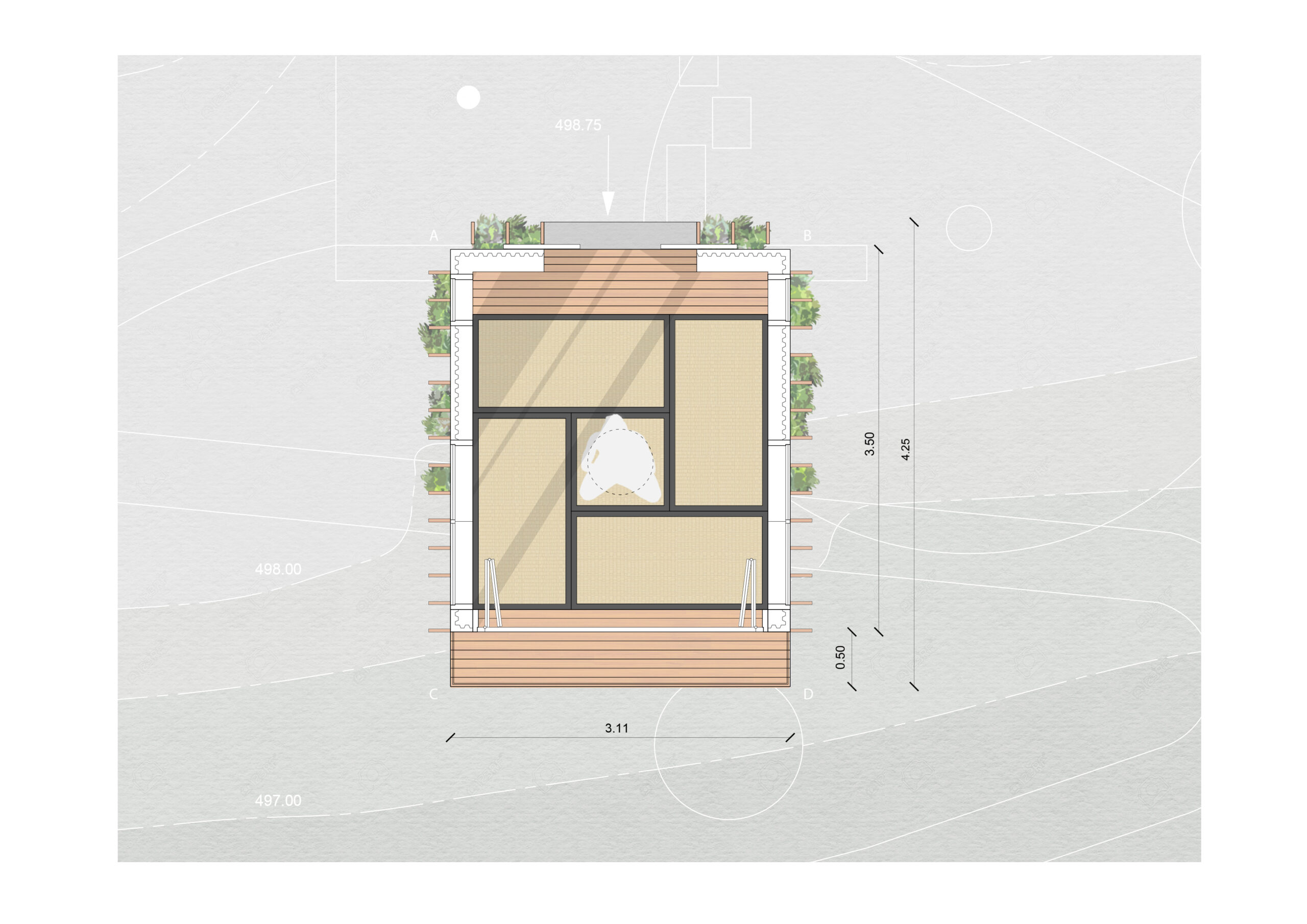 Durch die voneinander abgetrennten Einheiten, können die Wohnräume auch vermietet werden. Aufgrund der leichten Stelzenbauweise und der Verwendung von Holz, Dachbegrünung und einem transparenten Geländer fügt sich das APART ideal in die Landschaft ein.