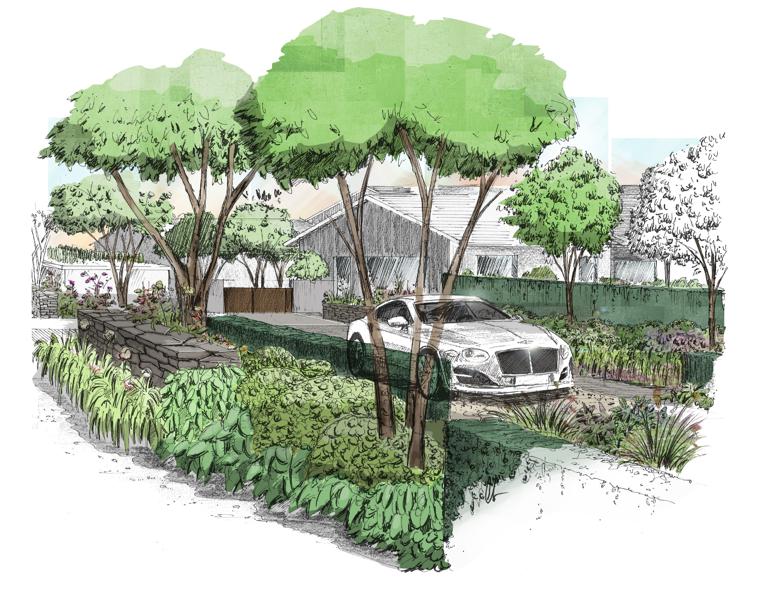 Für eine Kundin in Süddeutschland: Ein schönes Auto inmitten eines wunderschönen Garten.