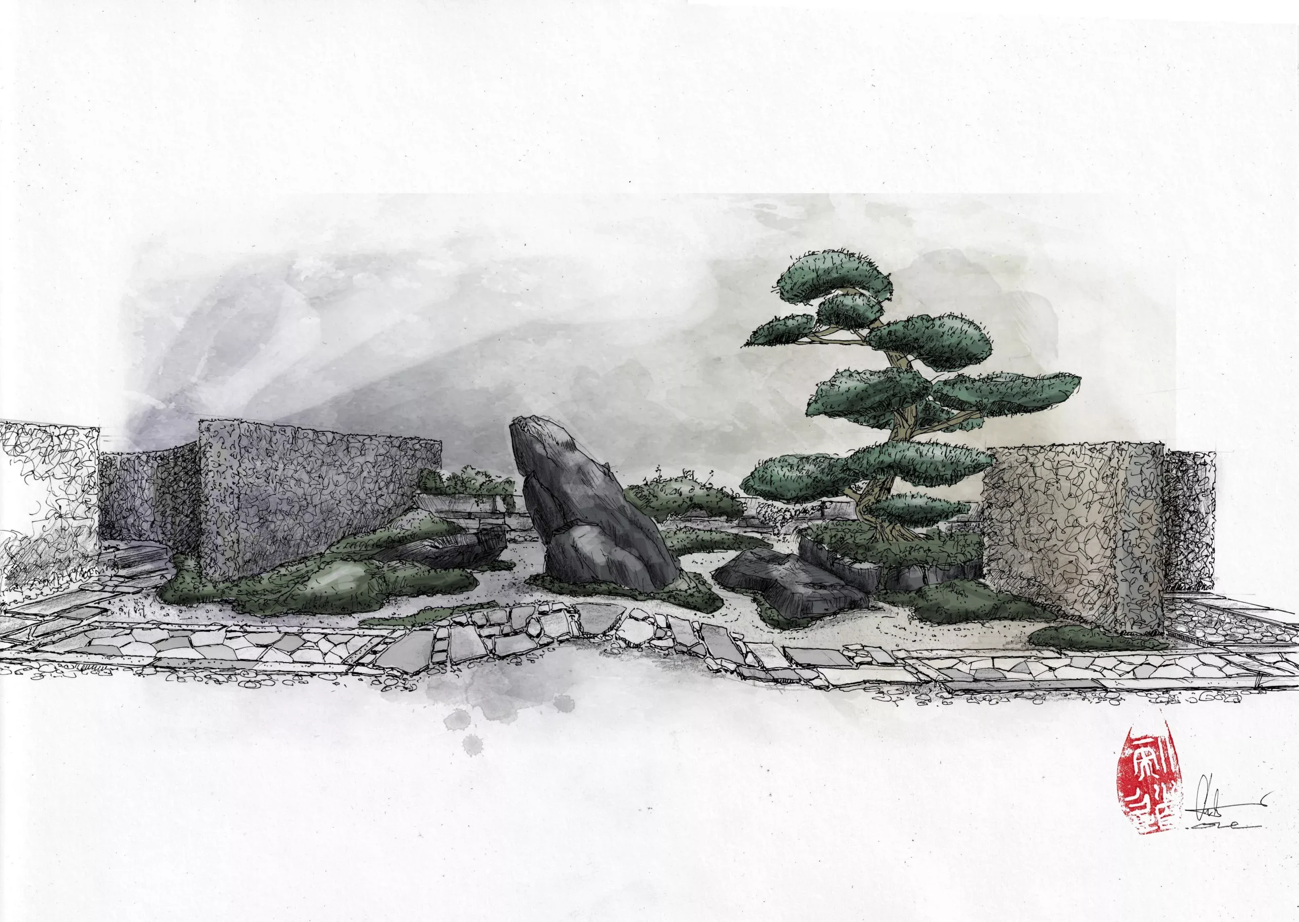 Auf besonderen Wunsch eines Kunde: Ein ganz kleines japanisches Garteneck.