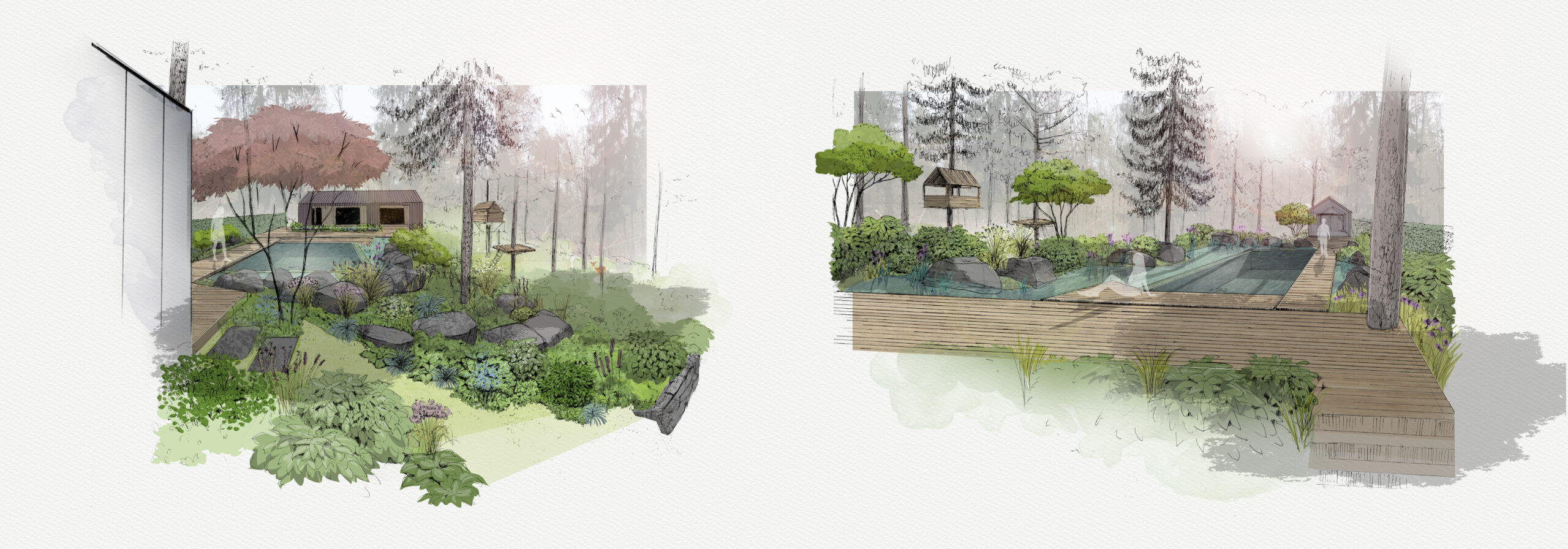 Natürliche Wasserwelten, nachhaltige Holzarchitektur und wiesenreiche Gartenräume vereinen