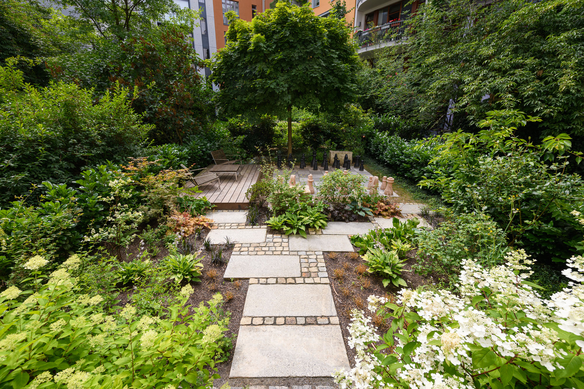 Auf einer Fläche von nur 100 m² entstand in Berlin-Friedenau ein kleiner, von außen kaum einsehbarer Stadtgarten – ein Refugium mitten in der Stadt.